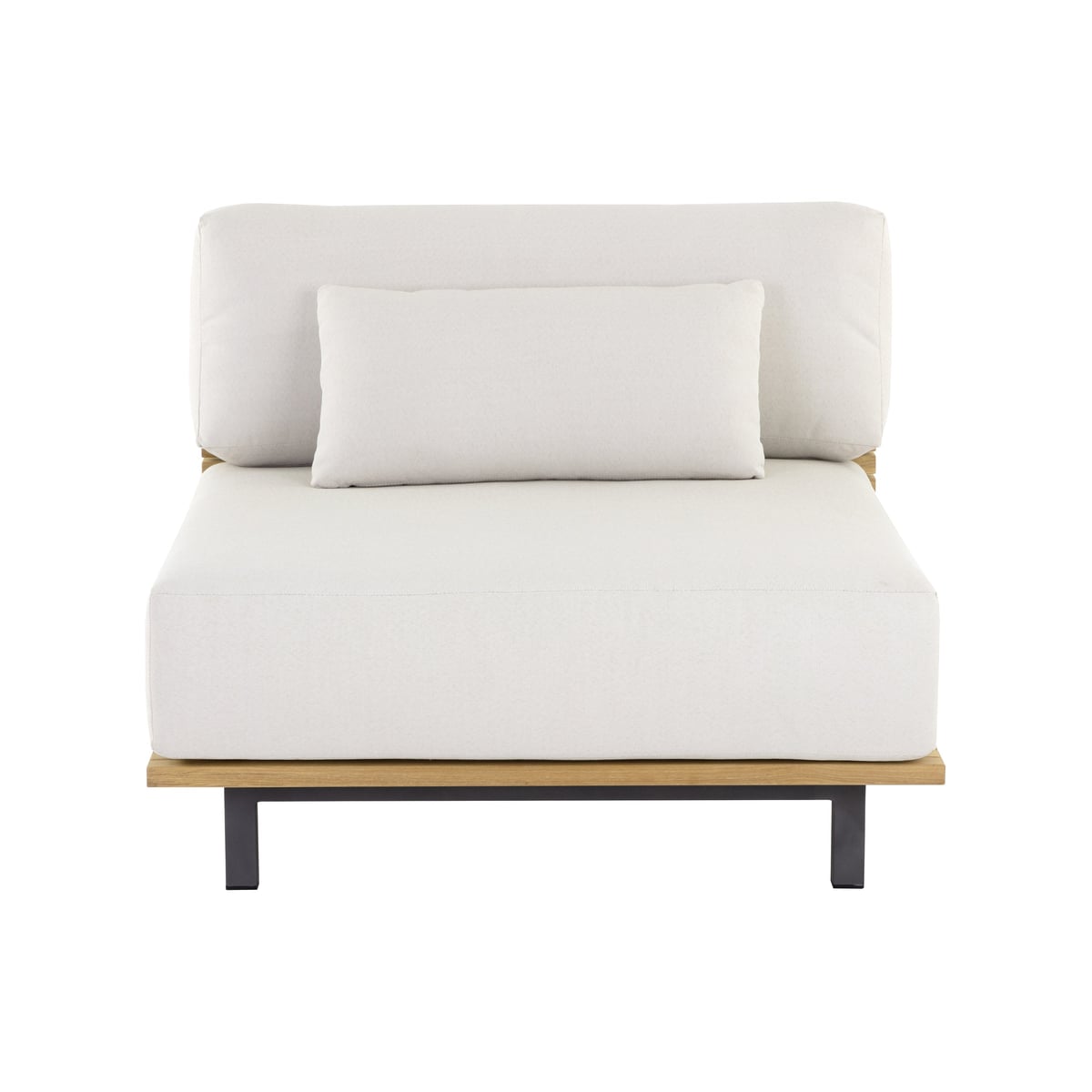 Outdoor Modular Armless Chair - Teak Wood & Cream Fabric