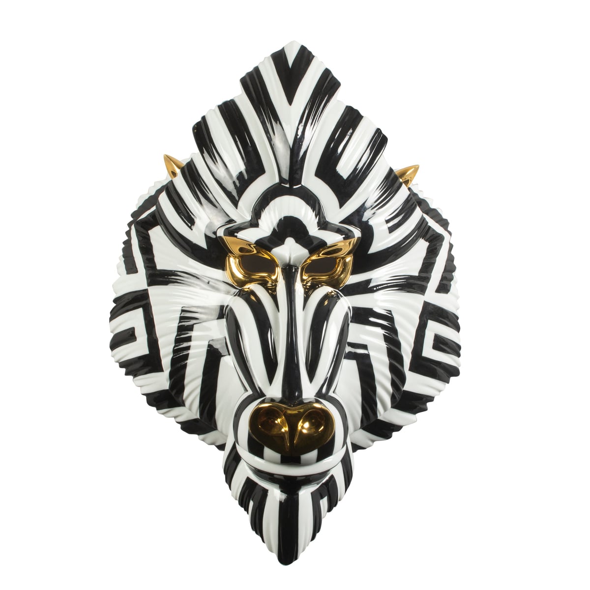 Mandrill Mask - Glossy Porcelain Art Sculpture in Black & Gold