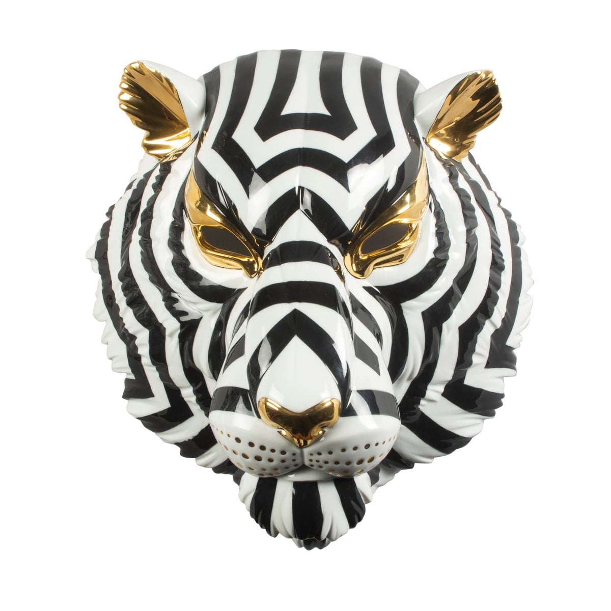 Tiger Mask - Glossy Porcelain Art Sculpture in Black & Gold
