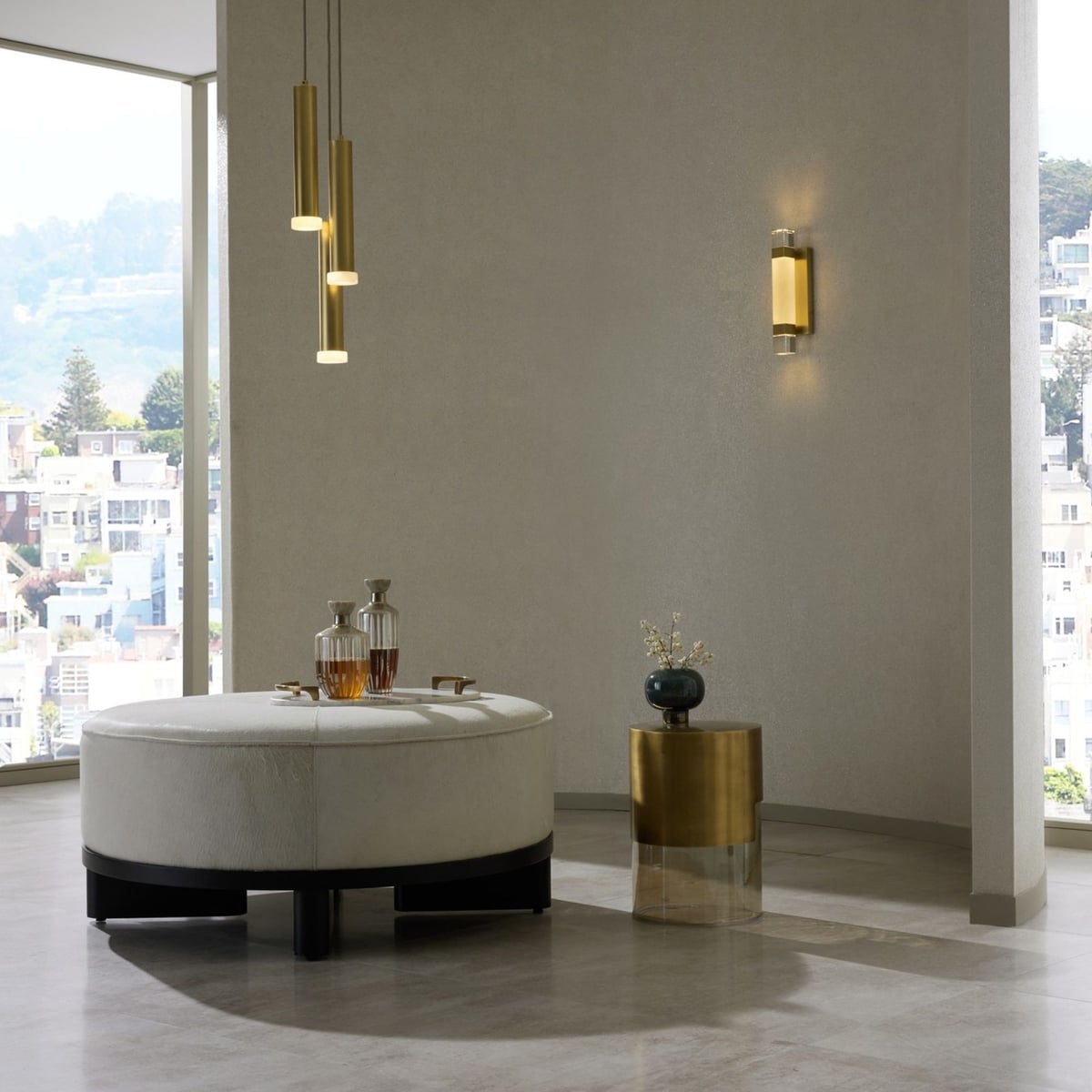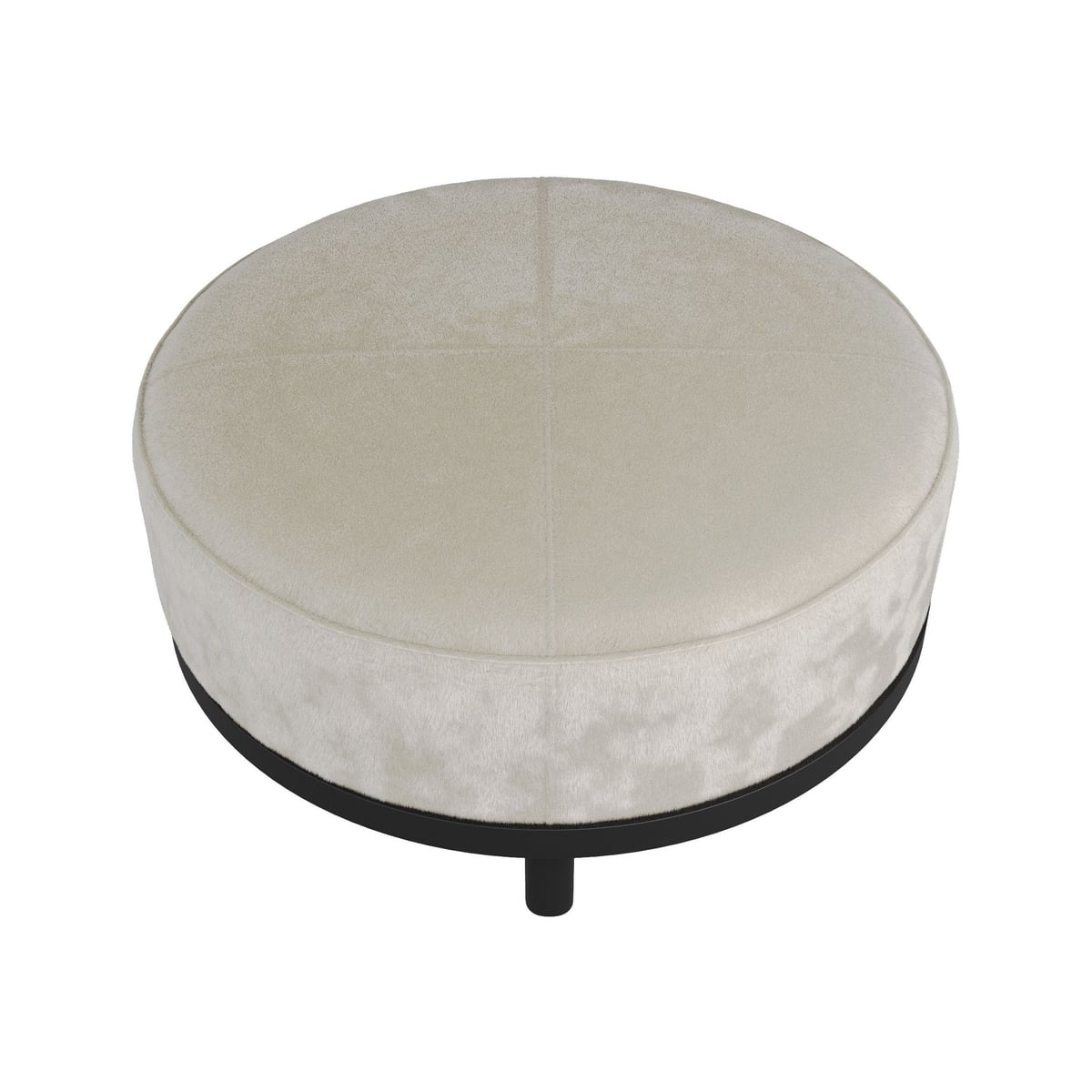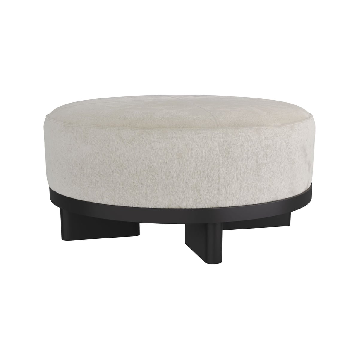 Aurora Ottoman - Leather & Hair-On-Hide Upholstery, Rustic Wood Base