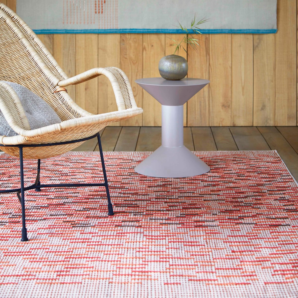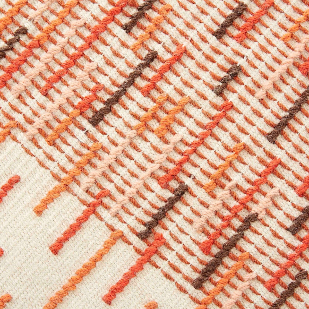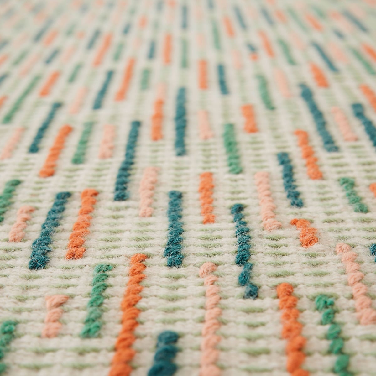Backstitch Busy Rug - Handmade Wool Area Rug in Green or Brick - Image 8