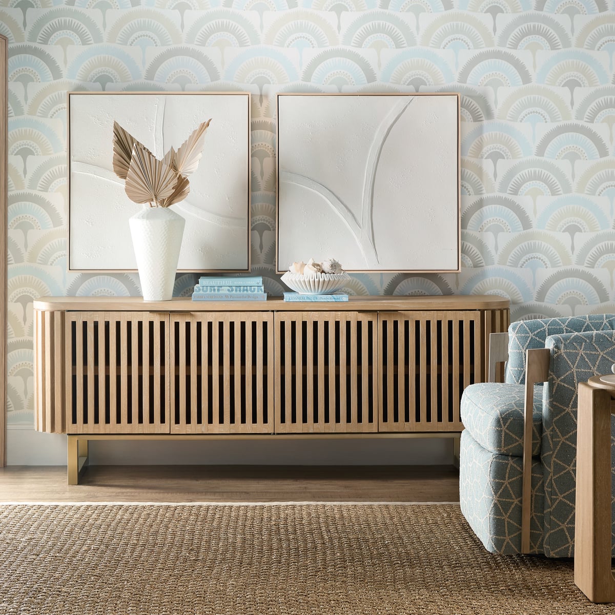 Entertainment Console - White Oak, 75" TV Capacity, Modern Design