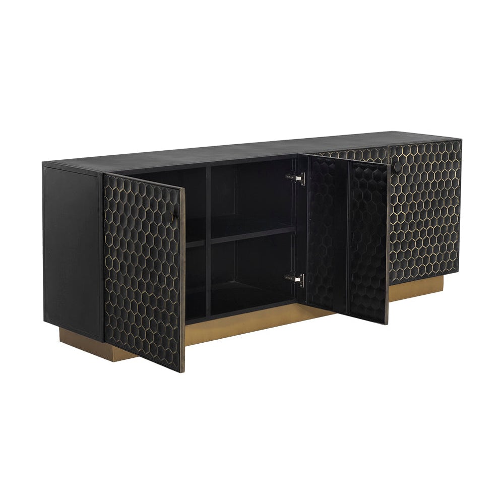 4-Door Sideboard - Handcrafted Black Iron with Brass Finish
