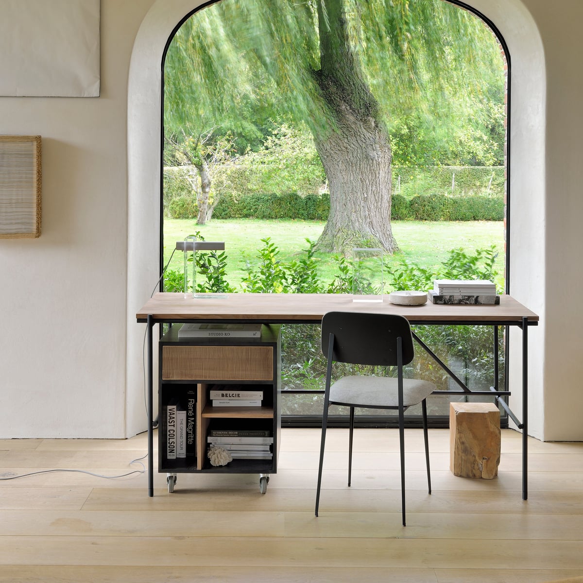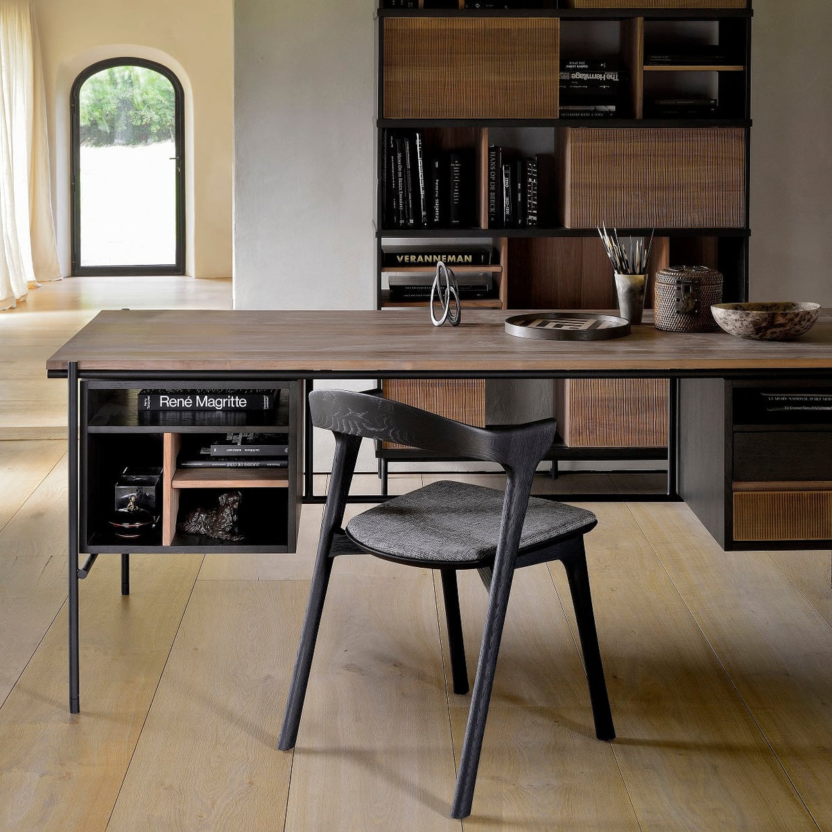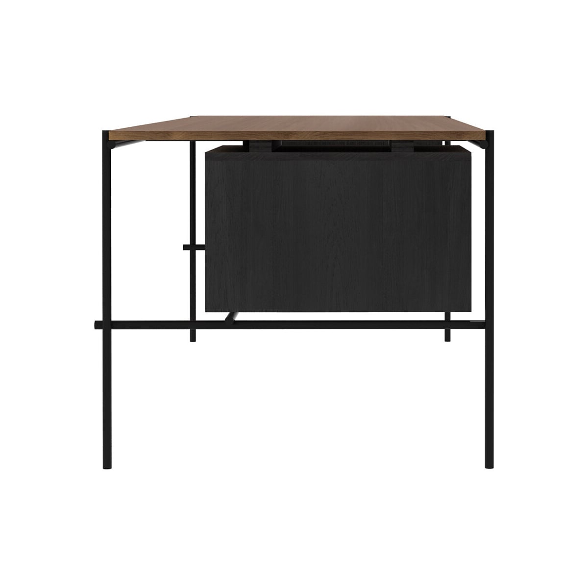 Oscar Desk with 2 Drawers - Solid Teak, Modern Design, Black Legs