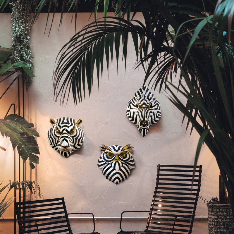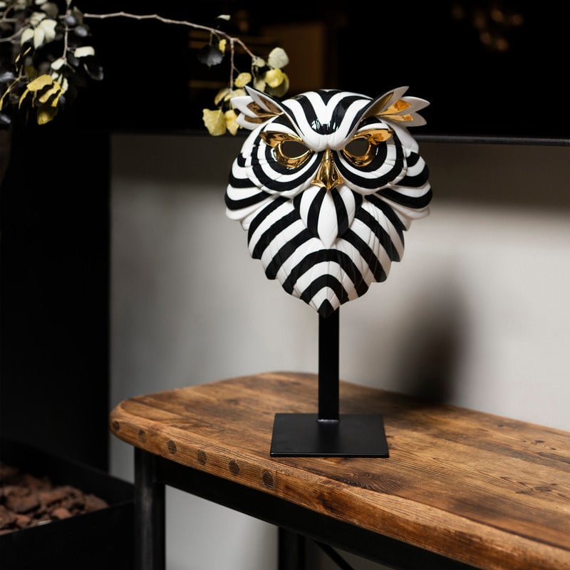Owl Mask - Glossy Porcelain, Black and Gold Decorative Art