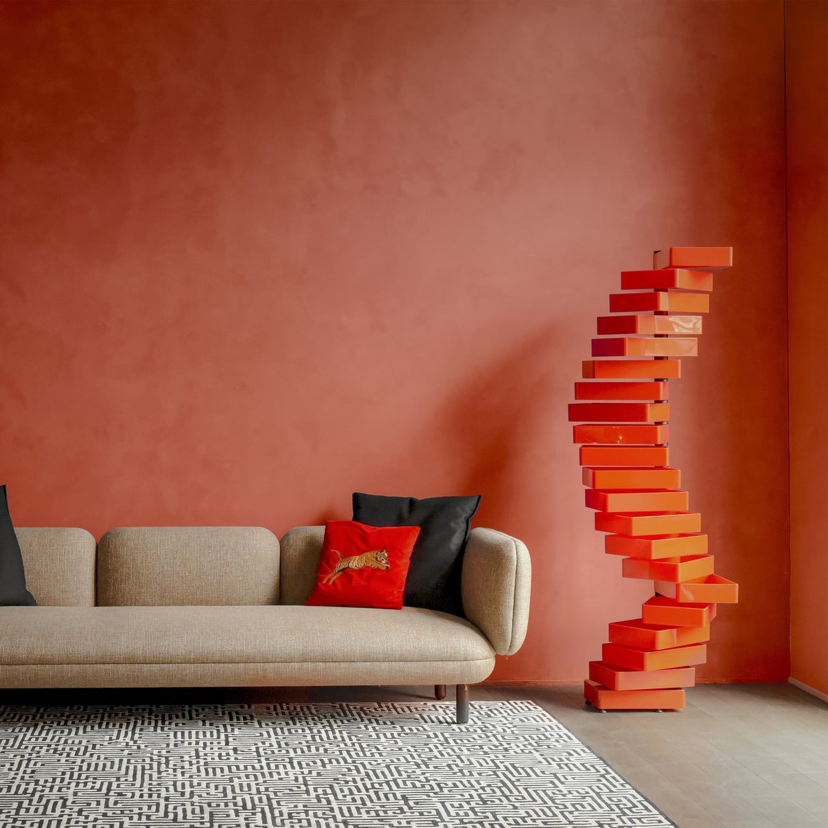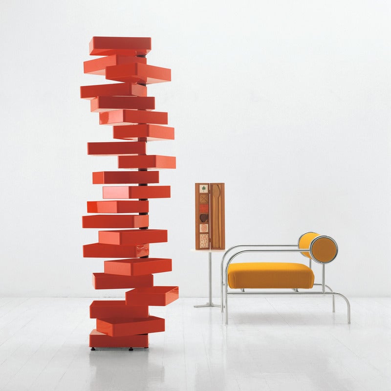 Revolving Cabinet - Modern Italian Design, Adjustable Shelves, Red