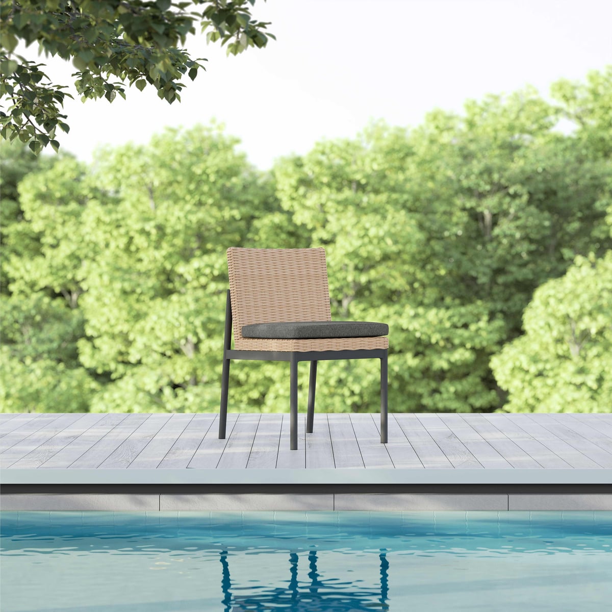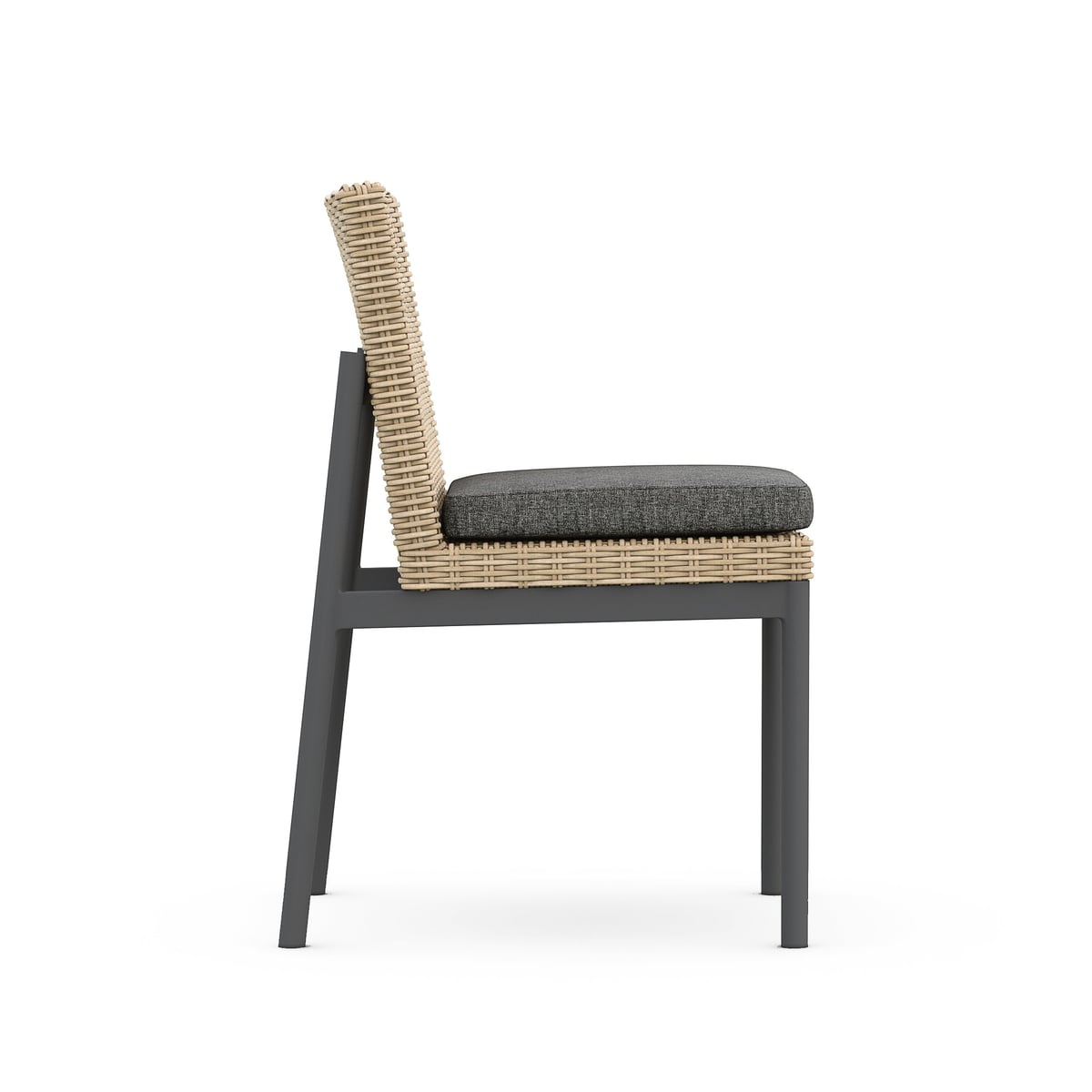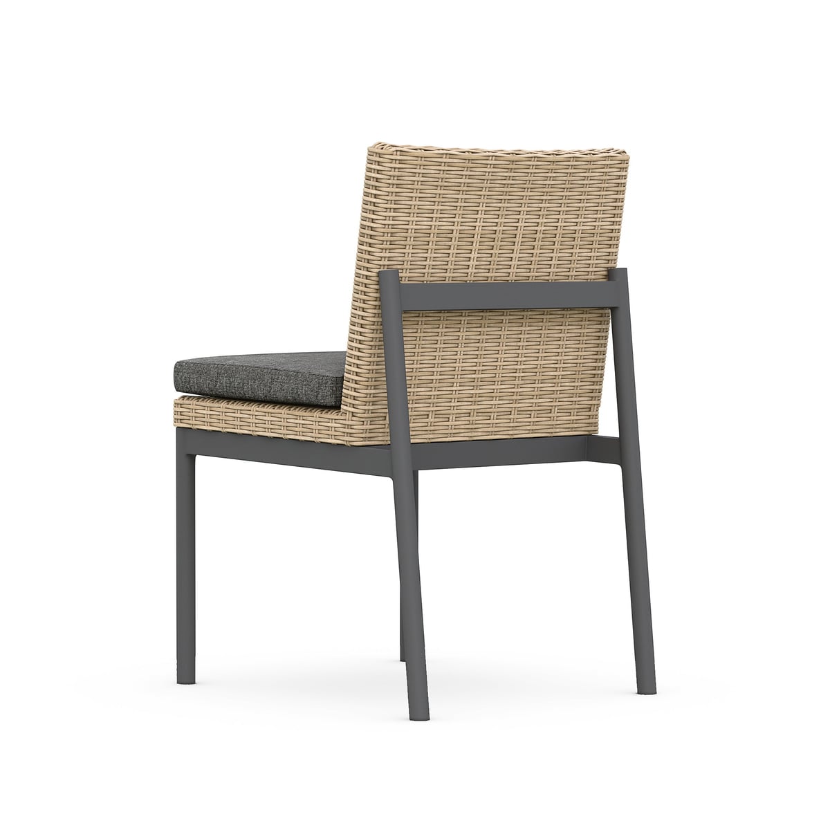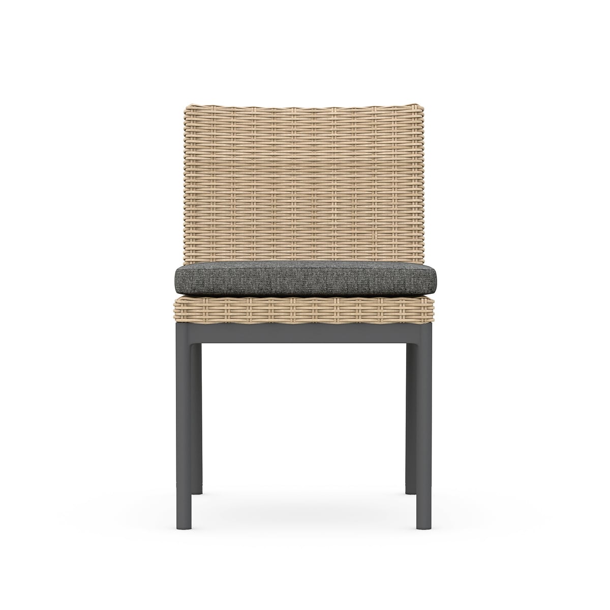 Armless Dining Chair Set of 2 - Matte Charcoal Aluminum & Wicker