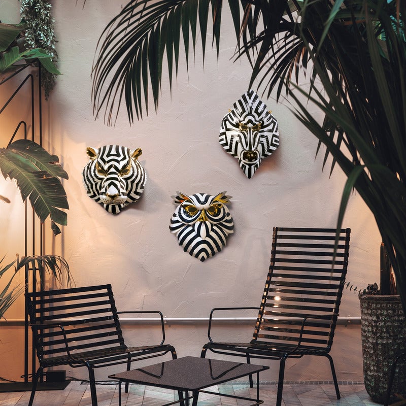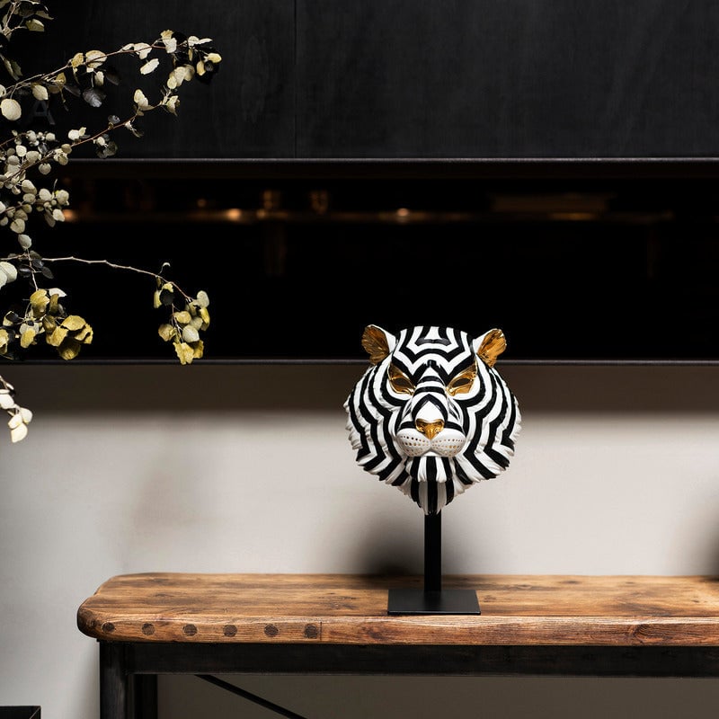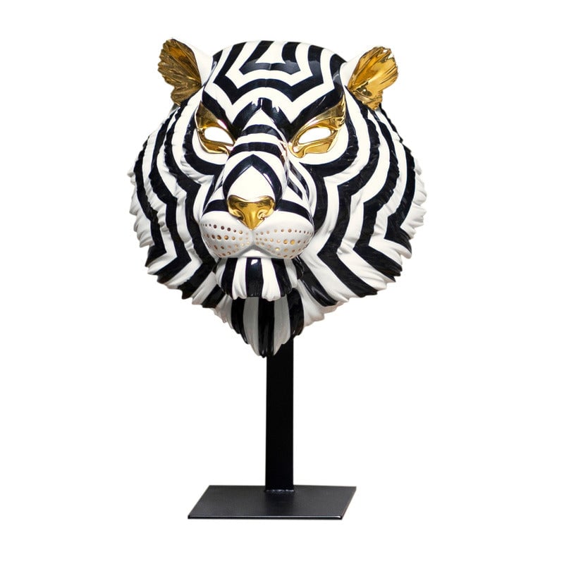 Tiger Mask - Glossy Porcelain Art Sculpture in Black & Gold
