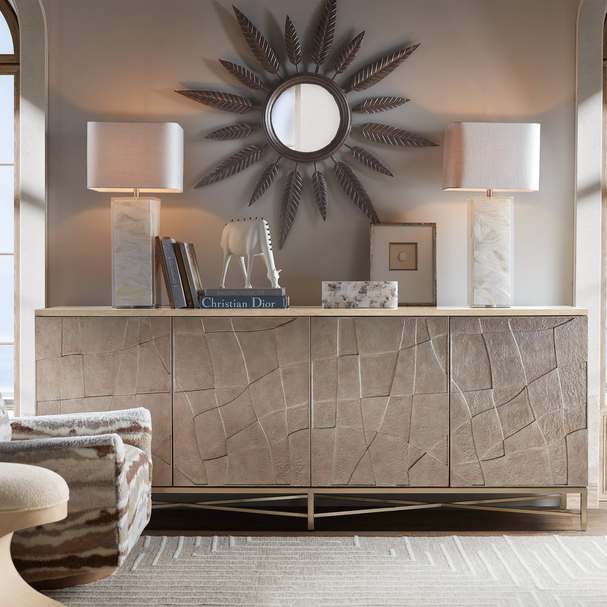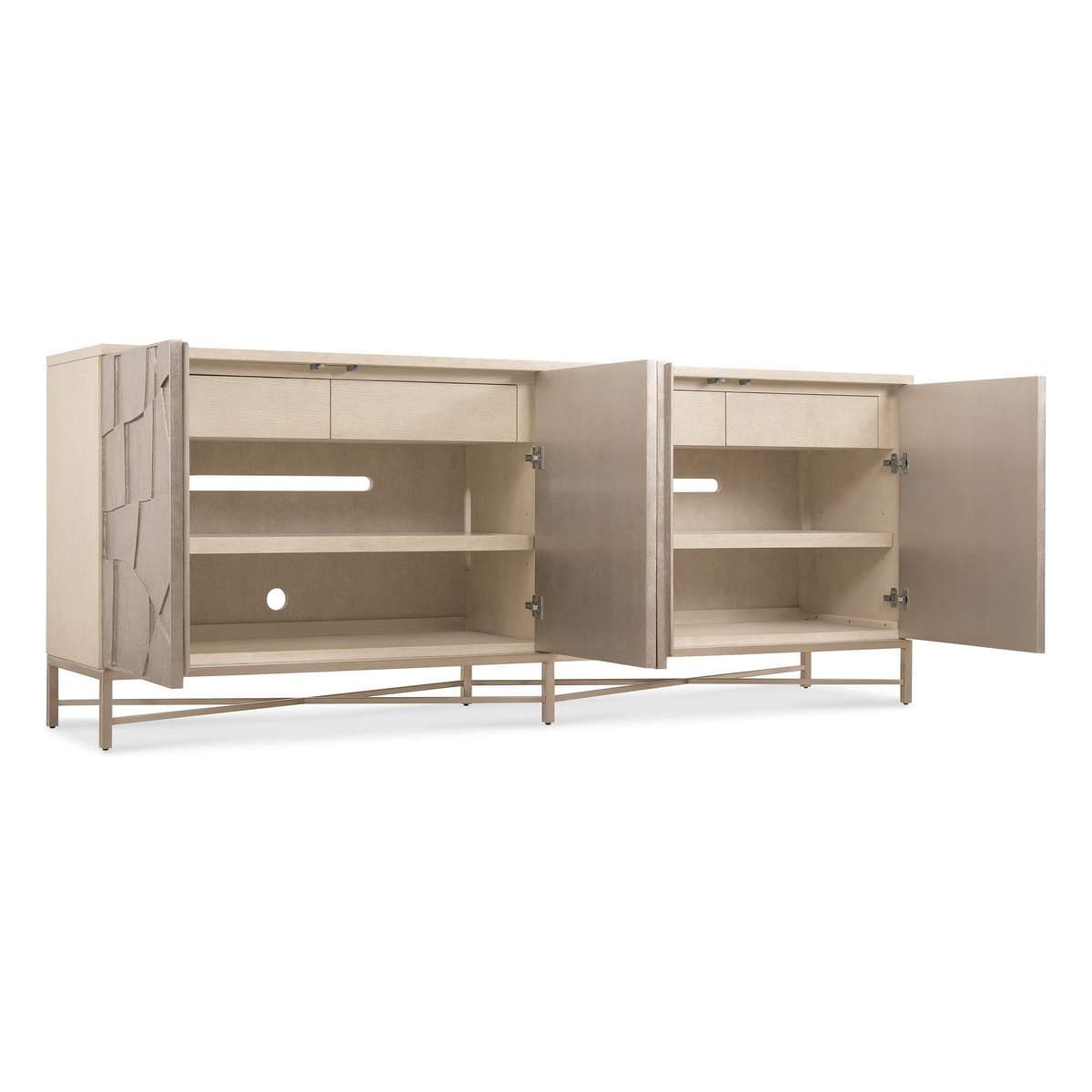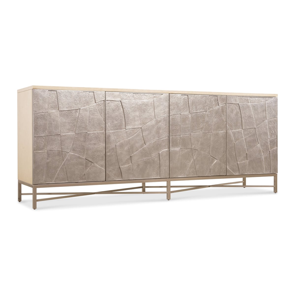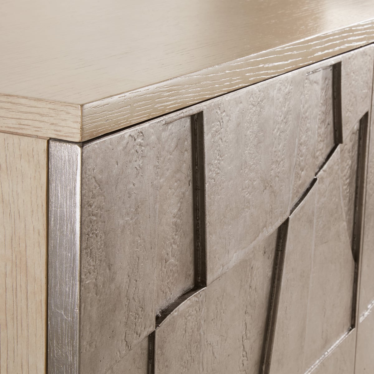 4-Door Credenza in Silver Finish with Oak Veneers & Adjustable Shelves