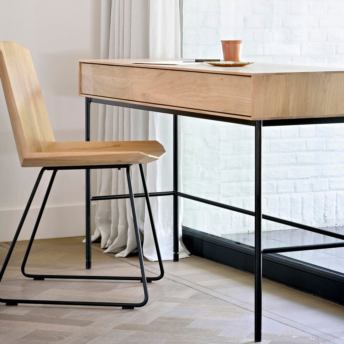 Oak Desk - Whitebird Modern Design with Black Metal Legs